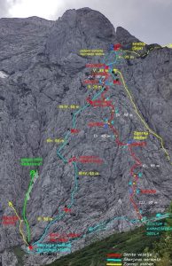 Z Janom sva zadevo preverila. Skala, kot sosednje smeri v Brani. Drži, kjer mora, sicer pa velja princip, bodi izbirčen pri izbiri oprimkov in stopov, izberi pametno. Klini, pestra izbira, kažejo smer plezanja, tudi tisti s PZS žigom. Če se orientiraš po podatkih s spletne strani slovenskestene.si, tam skice ni, še najbolje se navigira s tekstovnim opisom raztežajev. Fotografija stene z vrisom je slabo čitljiva. Glede na najino izkušnjo je raztežaje primerno skrajšati na kakšnih 40m, sicer se zaradi robatosti skale pojavlja trenje, toliko več, ko spreminja smer.