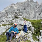 Tudi ta smer je zelo lepa, mestoma gredasta, marsikje krušljiva, na momente pa se je treba tudi malo potruditi. Planik ne manjka in ves čas  te spremlja čudovit razgled na Kamniško sedlo. Najboljši del pa je, seveda, sestop po melišču. 🙂