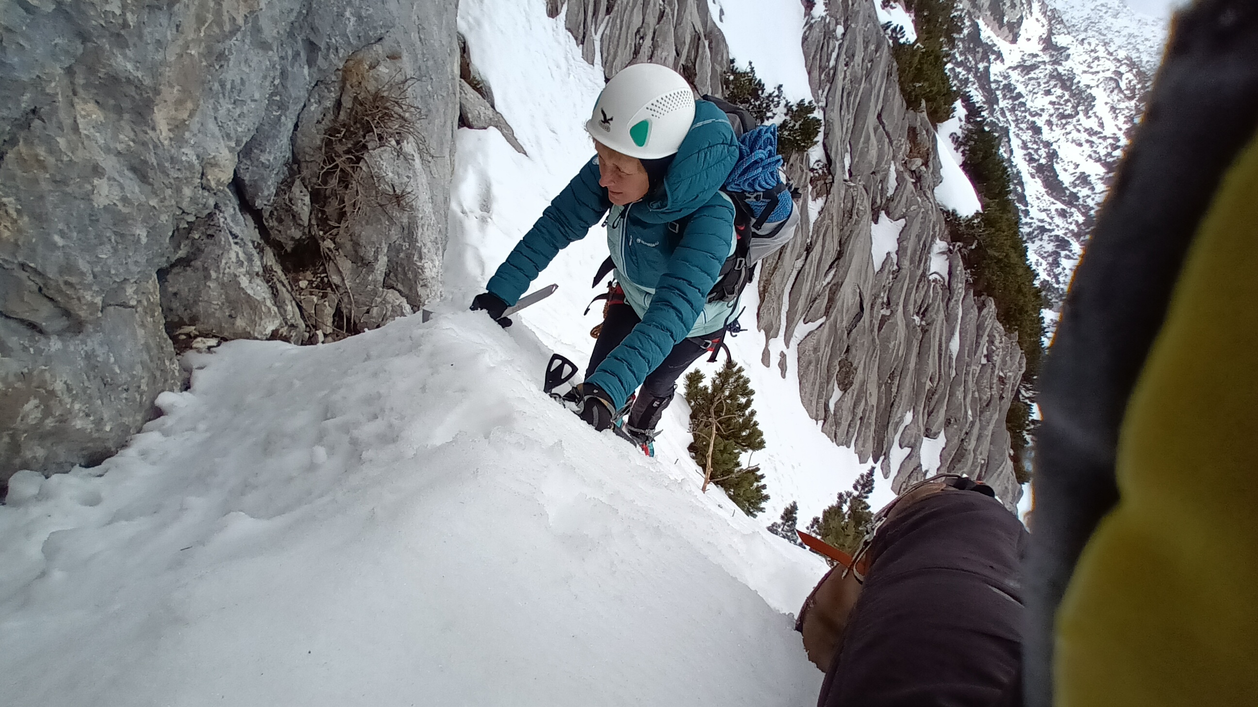 Plezala sem v družbi Mijota in Petre. Hvala obema za pomoč in vzpodbudo. Opravljena je še zadnja naloga za napredovanje stopničko višje ter pridobila sem meni nove poglede in občutke na zimske plezalne ture.
