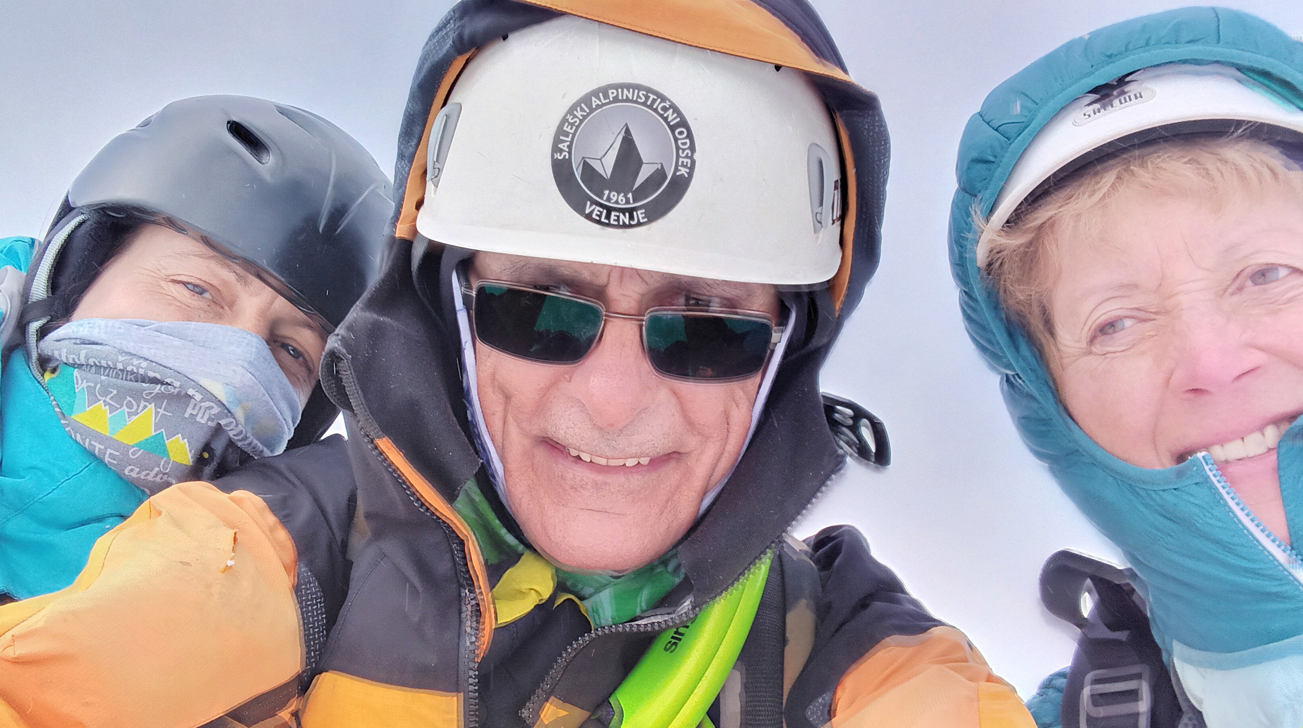 Zaradi sibirskih razmer na najvišji točki ni bila vidna niti bližnja Ojstrica, zato se na hitro fotografiramo in takoj usmerimo proti vstopu v Sestopno grapo. Pri sestopu je potrebna večja previdnost in pazljivost, saj je kljub nižji oceni sestopne smeri, naklonina v naravi na trenutke nekoliko večja. Gre počasneje. Vsako stopinjo in zatikanje cepinov preverim, da je res zanesljivo. Plezamo navzdol čez manjša brezna in luknje, ki se bohotijo levo in desno ob skalah. Za celotno plezanje navzdol zaradi višje zahtevnosti porabimo več časa kot za sam vzpon na vrh.