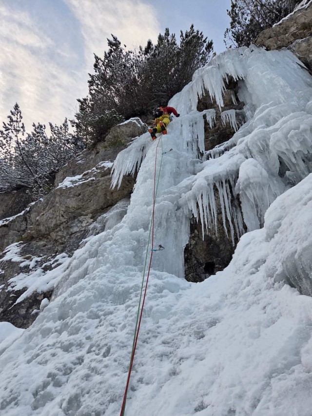 Upam, da po otoplitvi ki nas čaka ta teden, še malo stisne, da se bo dalo v Logarski še kaj splezat. Če že slapovi niso bili kaj posebnega pa sta bila dostop in sestop prav pravljična, po 30 cm pršiča med zasneženimi smrekami, prava zimska idila 🙂
